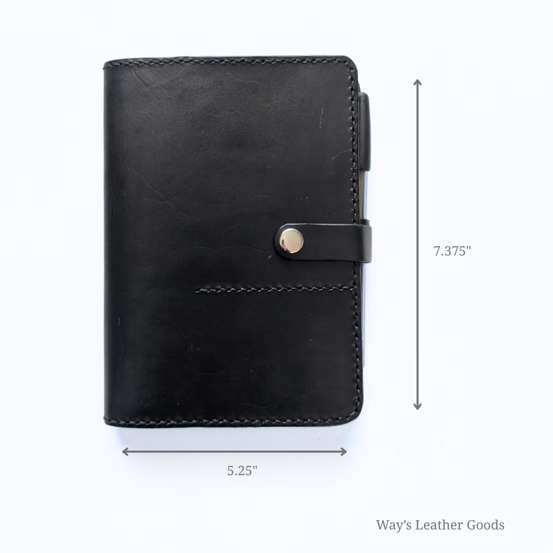 Elevate your everyday writing with this timeless black vegetable-tanned leather journal cover, thoughtfully handcrafted and handstitched for lasting beauty and durability. Designed to age gracefully, making it uniquely yours with every use.