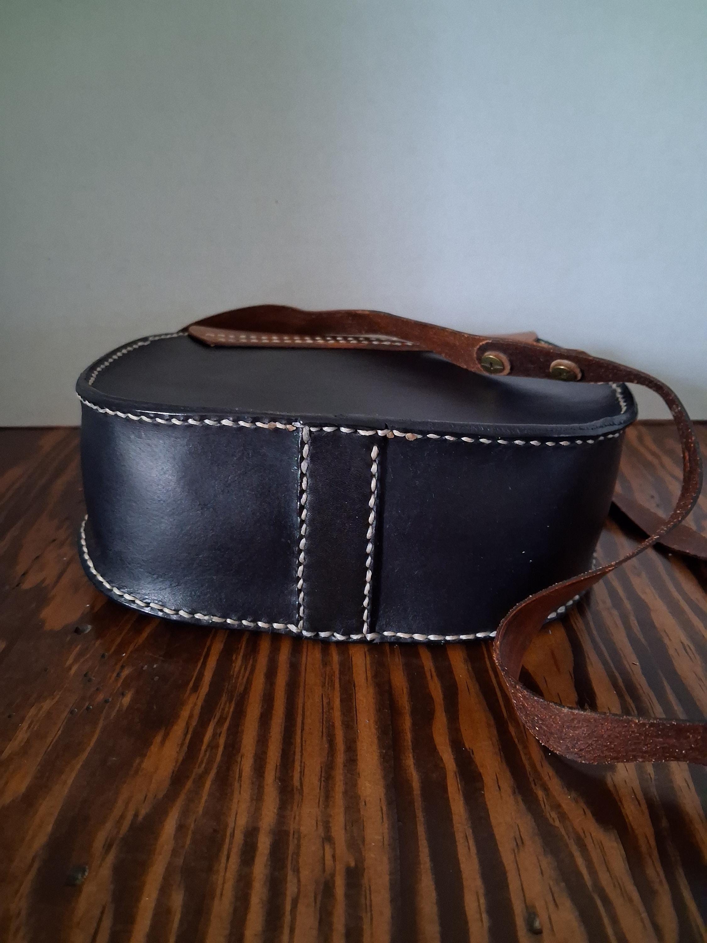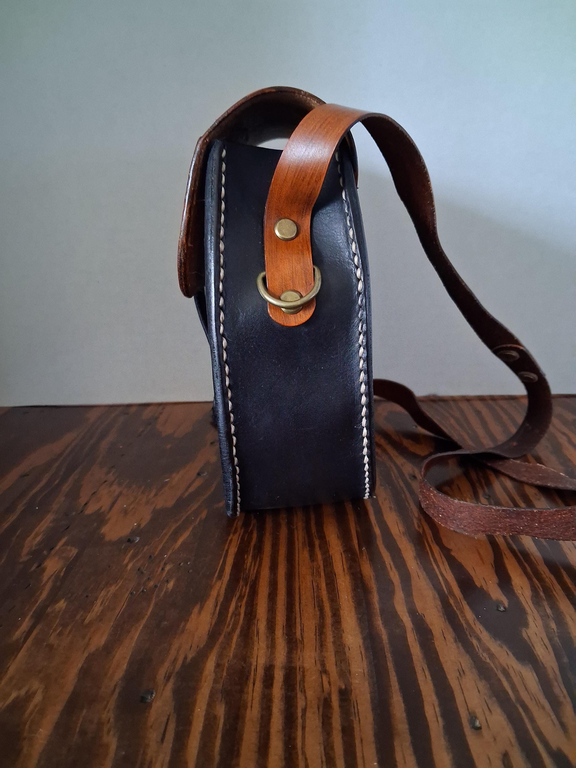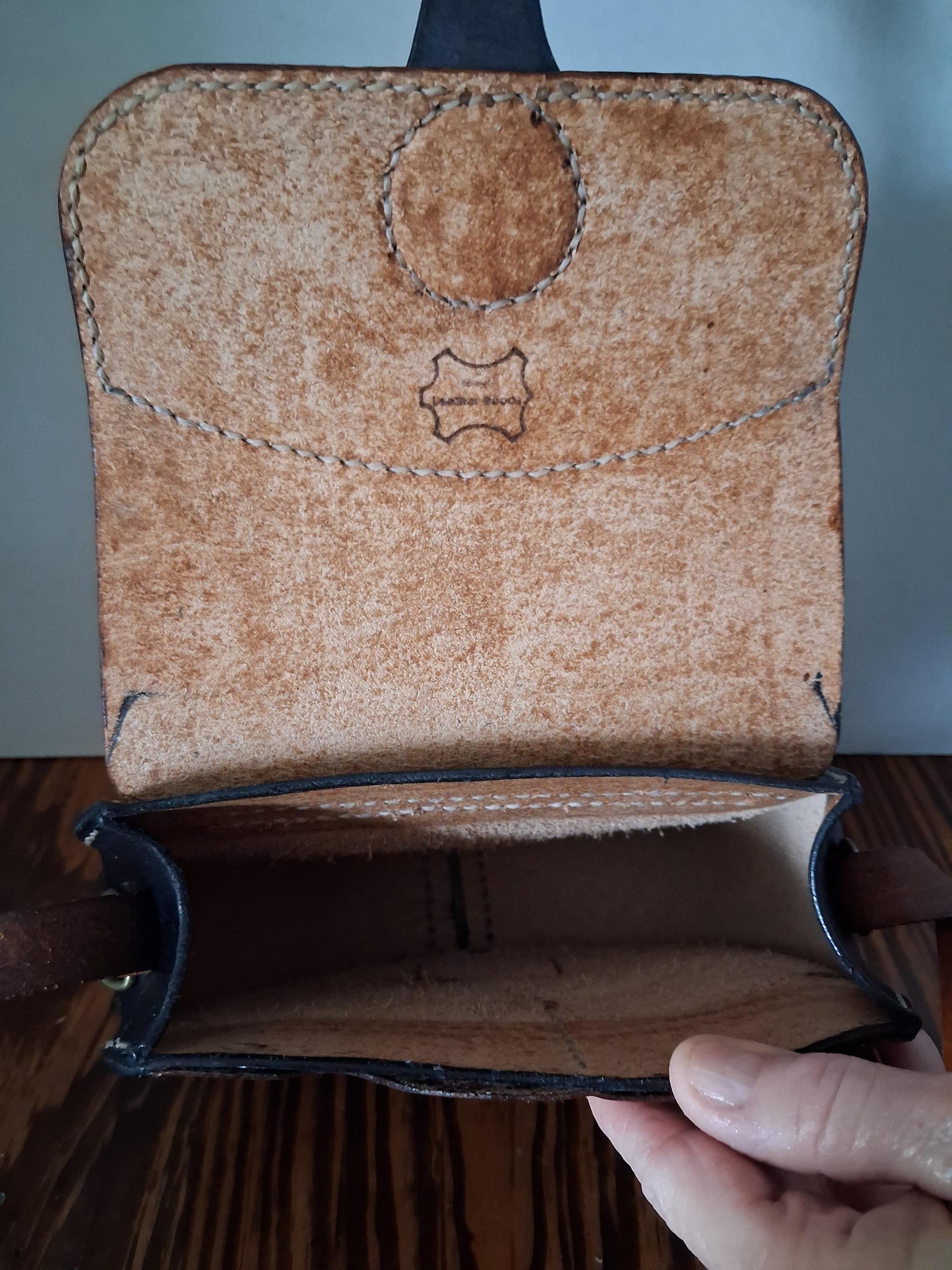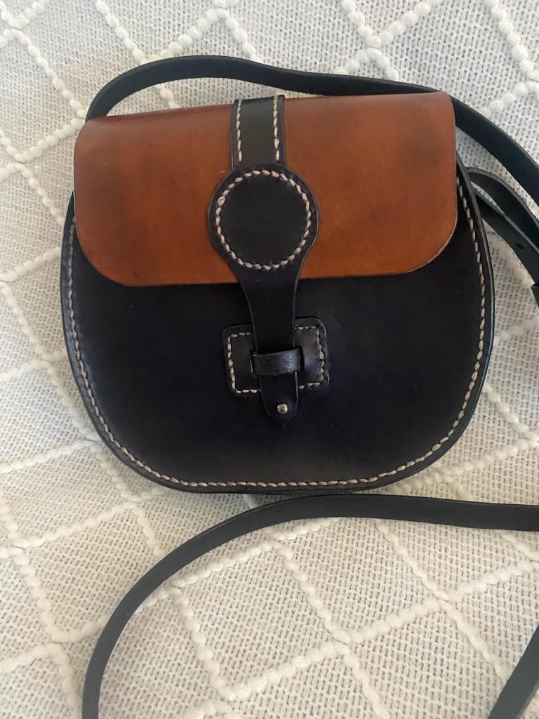 Black and brown leather cross/body purse.