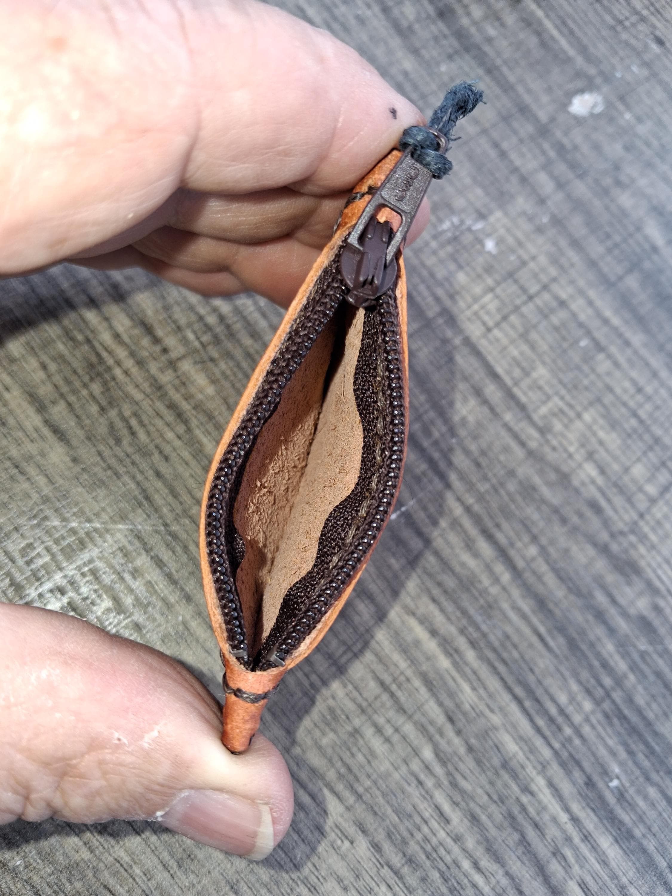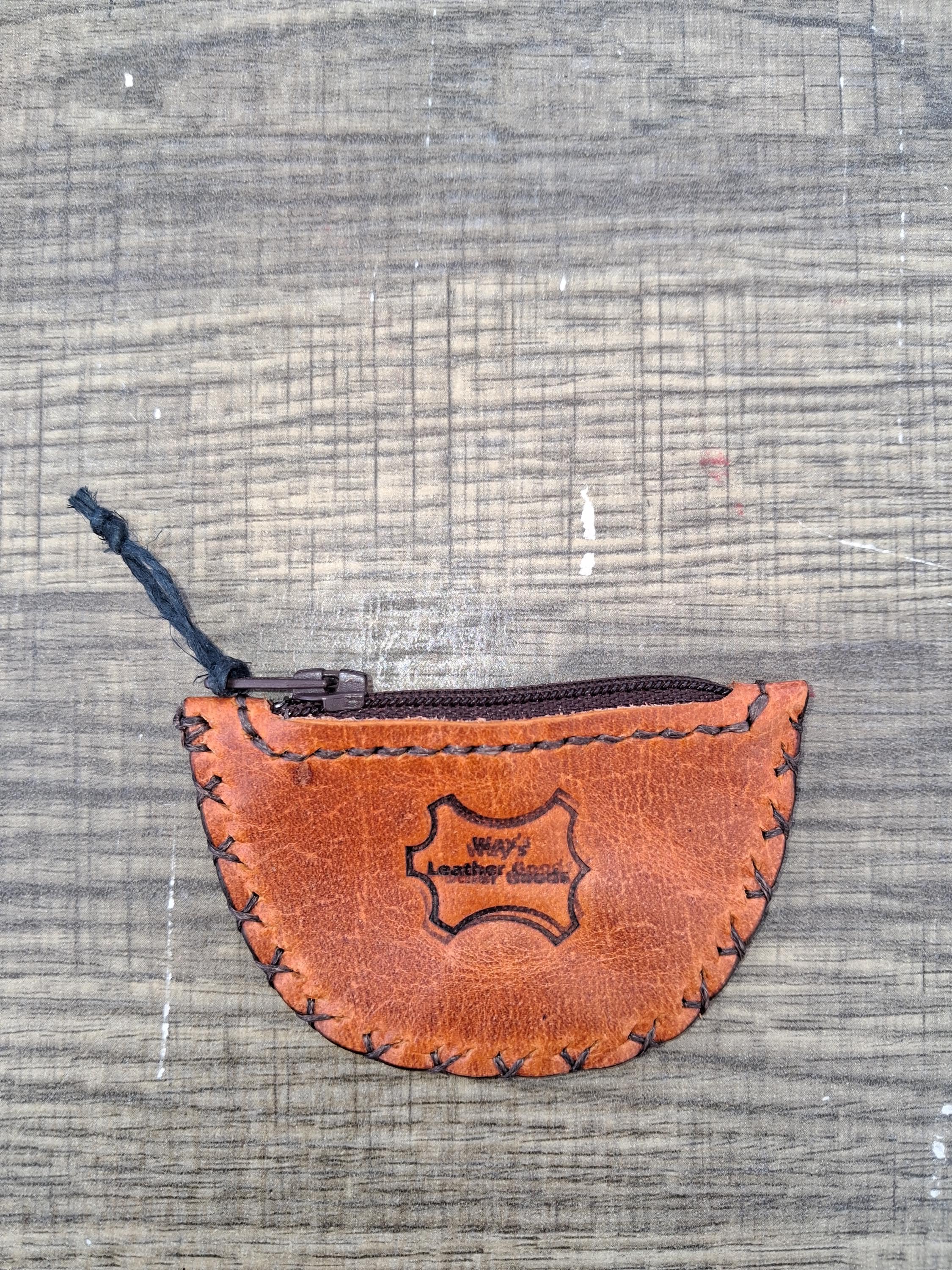 A timeless, handcrafted leather coin purse designed for simple, everyday use. Made from rich orange-brown leather and finished with matching brown stitching and a brown zipper, this piece offers a clean, cohesive look.